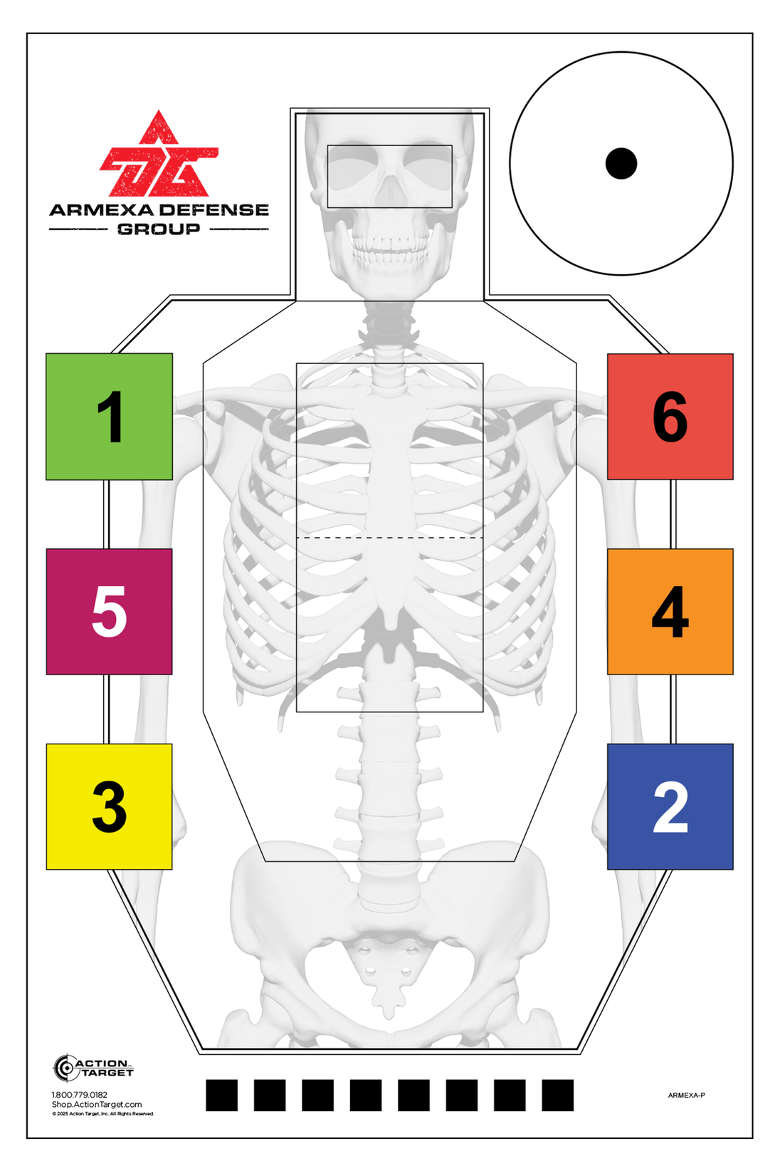The Armexa Integrated Training Target combines multiple training tools into one sheet, giving shooters everything they need for decision-making, precision, and red-dot zeroing — all in a single, efficient platform.