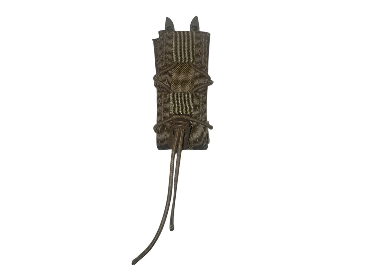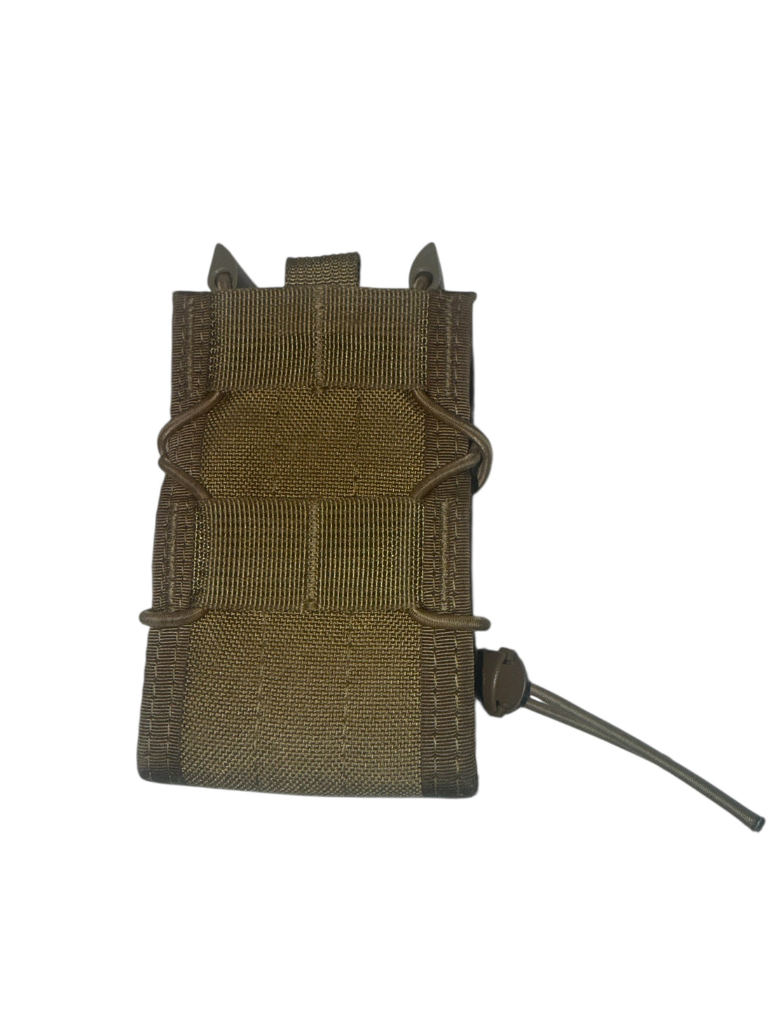 The High Speed Gear (HSGI) Single Taco AR Magazine Pouch in Coyote is one of the most versatile and reliable rifle mag carriers on the market. Designed with HSGI’s signature shock-cord retention system, this pouch securely holds any AR-15 / 5.56 magazine, as well as a wide range of other rifle mags—without needing inserts or specific sizing.